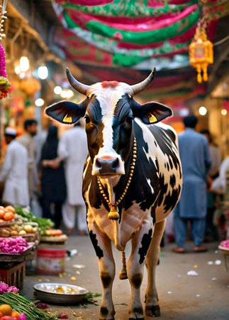 Cow in the street market in Kuala Lumpur, Malaysia, Asia.