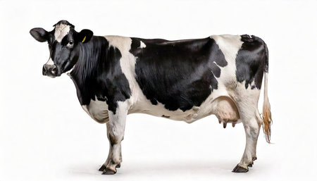 Black and white cow isolated on a white background, clipping path included