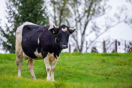 Holstein cow. Dairy cow. Cowshed on a summer pasture.
