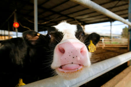 Cute curious Jersey cow on a farm in Denmark