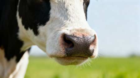 This close-up photograph features a cow's nose with expressive details and textures, set against a soft background, showcasing the essence of farm life and the beauty of nature.