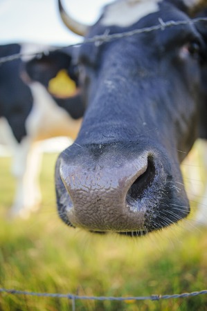 Close-up of a funny cow on on farmland in the Netherlands