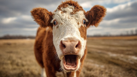 Dairy cow frowning staring at you.AI generated