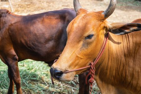 cow brown in farm thailand
