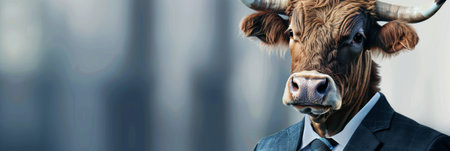 Cow in a Business Suit, Animal Businessman, Funny Bull Boss, Bull Headed Man in a Formal Business Suit, Generative AI Illustration