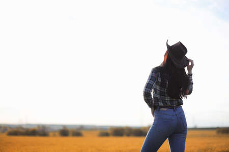 cowboy couture. Vintage style man. Wild West retro cowboy. wild west rodeo. Handsome man in hat. man checkered shirt on ranch. cowboy in country side. Western. western cowboy portrait