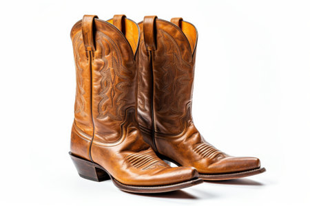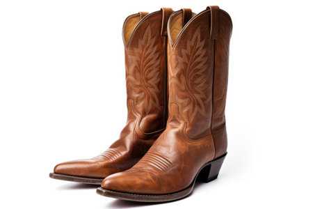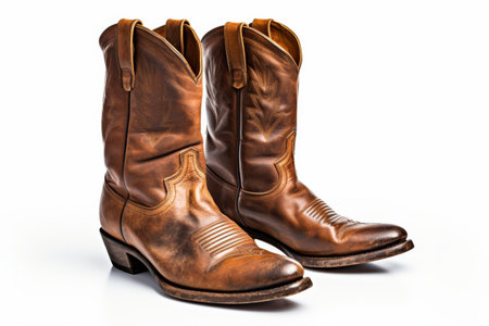 Brown Cowboy Boots isolated on white background with copy space for advertisement