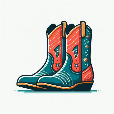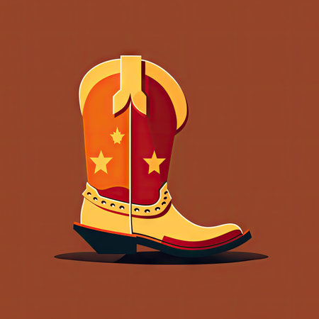 Traditional Cowboy Boot Flat Icon, Wild West Leather Footwear, Cool Ranchers Footwear, Cowboy Boots, AI Generative Image