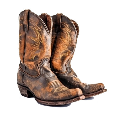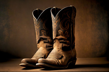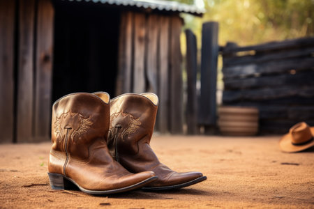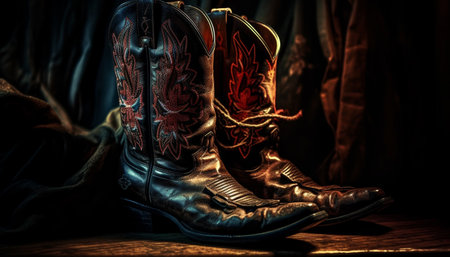 Rustic leather cowboy boots with shiny spurs for outdoor fashion generated by artificial intelligence