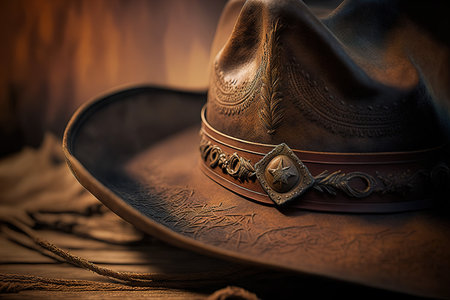 Cowboy hat on wooden background. Vintage style. Selective focus.