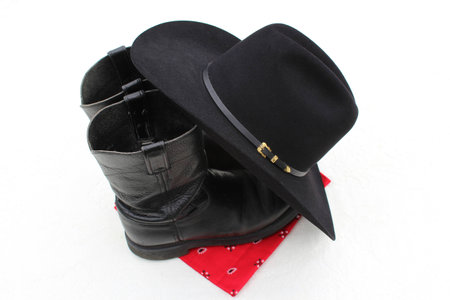 Black Cowboy Hat Cowboy Boots Red Bandana