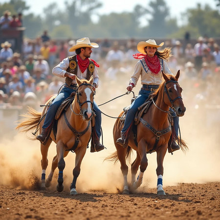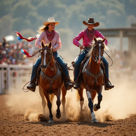 Boots, Buckles, and Braids. Cowgirls' Rodeo Showtime Preparations. Generative AI