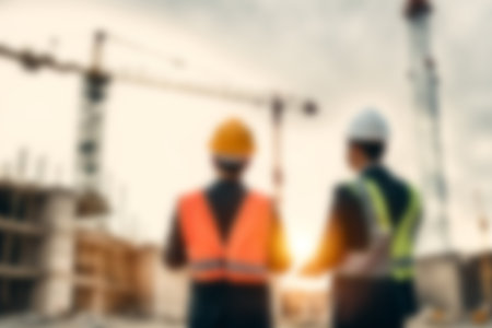 Blur images of workers in construction site. Silhouette Engineer and construction team working at site.