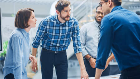Creative managers crew working with new startup project in office. Team brainstorming.