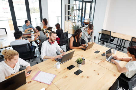 diversified business people work in a coworking center.
