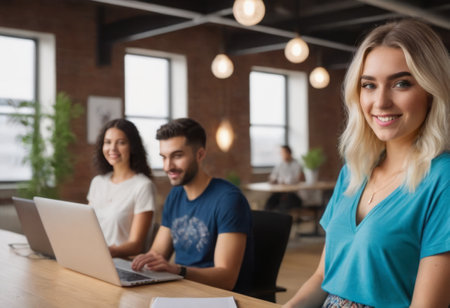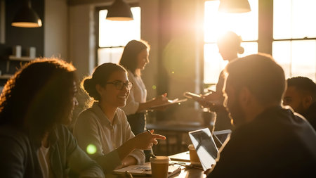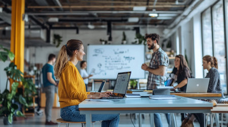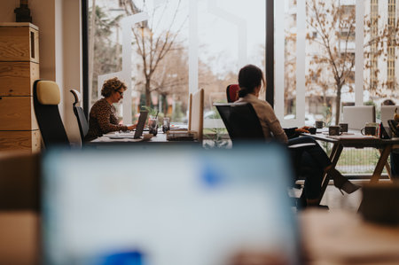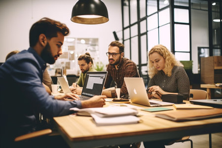 Professional collaboration in a modern workspace during the afternoon with laptop users