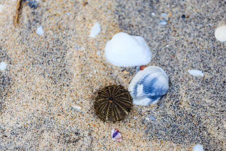 Natural sea shells on sand beach