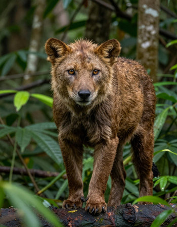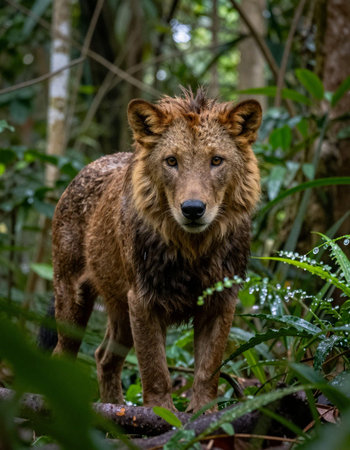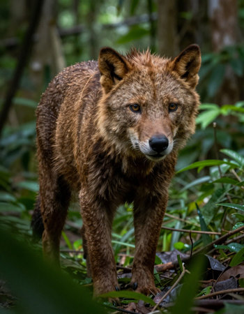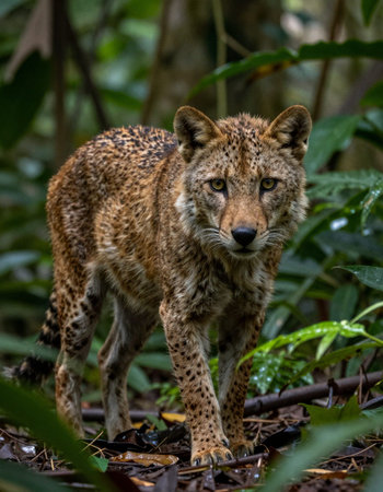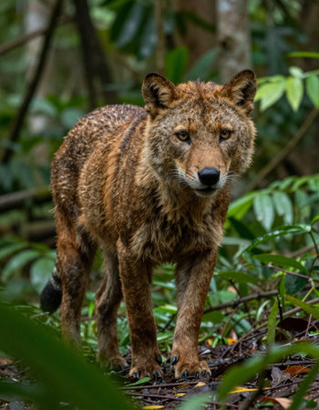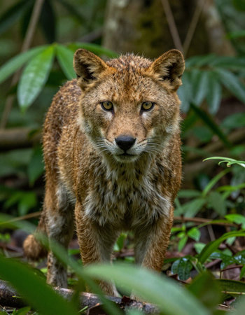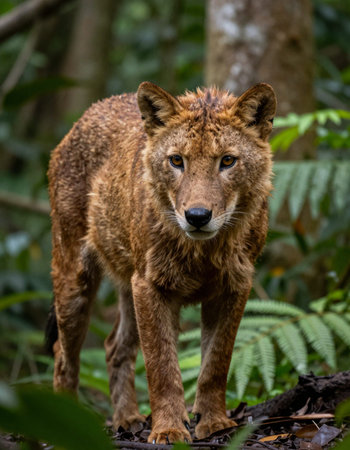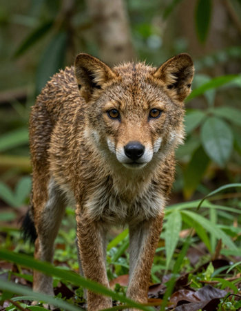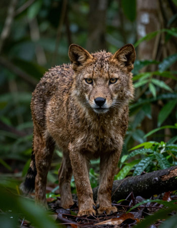 Portrait of a wild wolf in the rainforest of Costa Rica