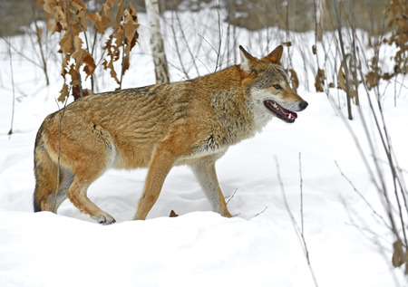 Gray wolf, Canis lupus in the winter forest. Wolf in the nature habitat