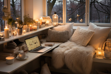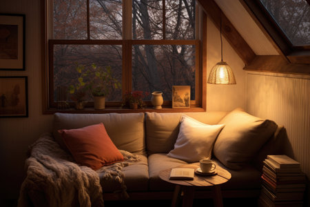 a cozy reading nook with soft lighting, created with generative ai
