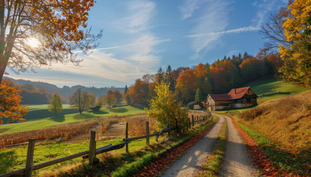 Enchanting autumn rural panorama in high resolution image capturing sunny idyllic countryside beauty
