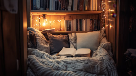 a cozy reading nook with soft lighting, created with generative ai