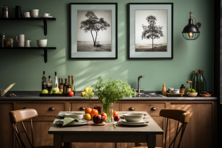 Kitchen boho rustic. Room decoration. Generate Ai