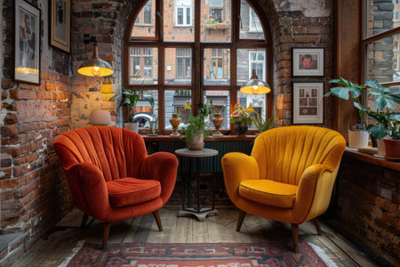 cozy wood table coffee illustration corner armchairs, lighting chatting, warm inviting cozy wood table coffee