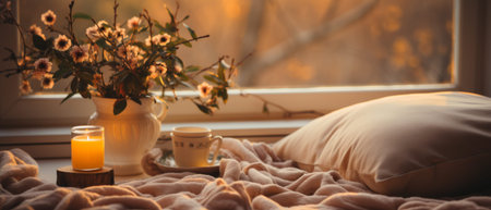 Cozy autumn still life in a homely atmosphere with decorative items.