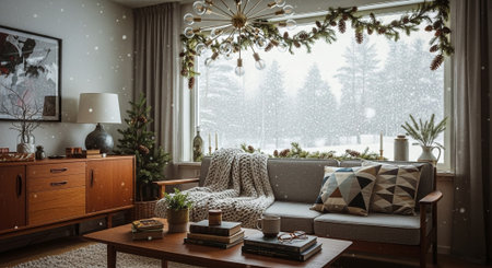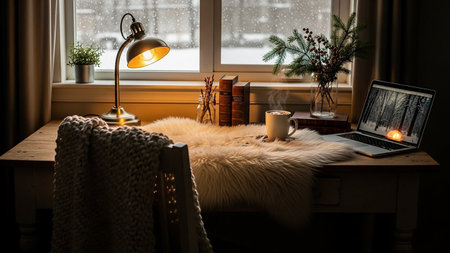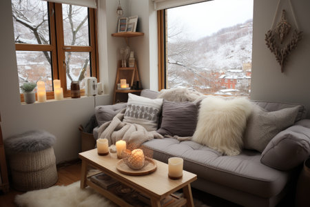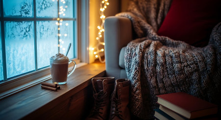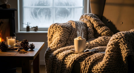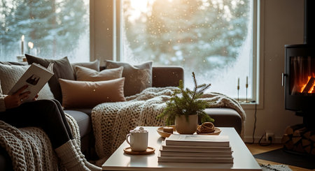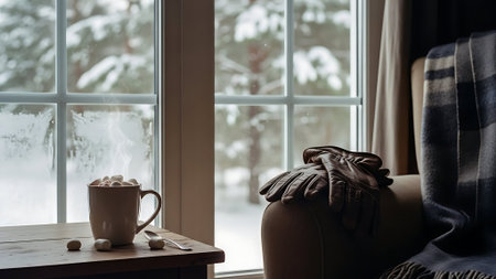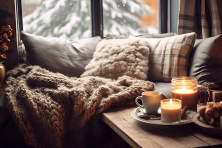A cozy winter at home near the window infused with the cozy charm of Hygge