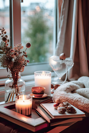 A cozy winter at home near the window infused with the cozy charm of Hygge