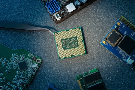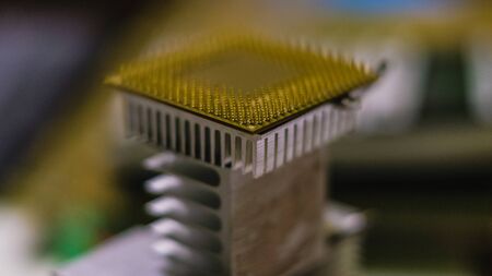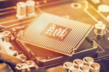 Microprocessor technology evolution concept. Close-up of CPU Chip Computer Processor. Selective Focus.