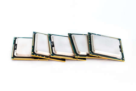 collection of old processors isolated on the white background