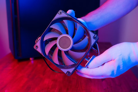 replacement of the cpu fan in the computer by the person on the table