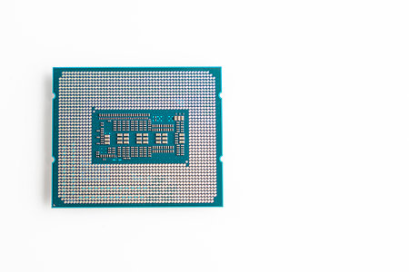 Central processing unit CPU computer server motherboard socket computer components isolated on white background close-up