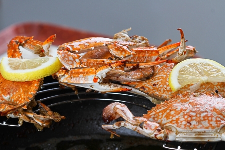 Fresh seafood crab cooking food in the restaurant, Steamed or boiled Blue Swimming Crab ocean gourmet with herbs and spices