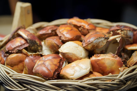Boiled crabs in a basket. Selective focus. Shallow depth of field.