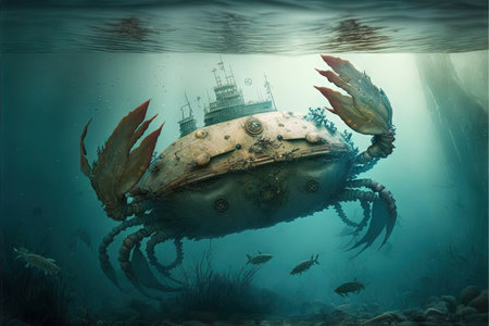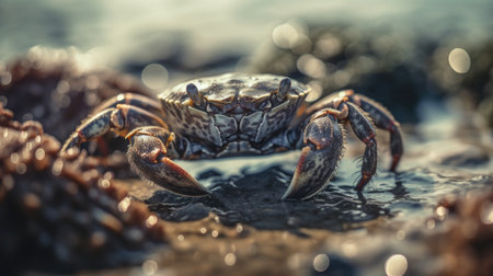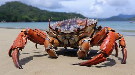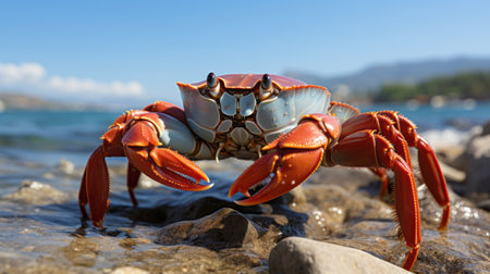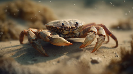 A crab scuttles across the sand its claws snapping menacingly created with Generative AI