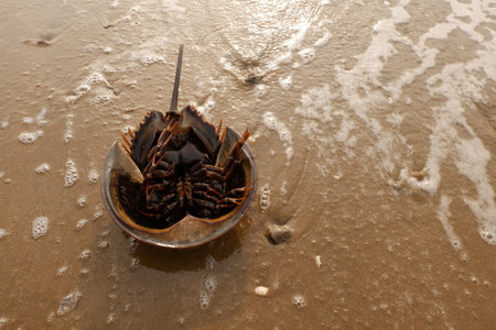 Horseshoe Crab in a bowl on the beach, Thailand.