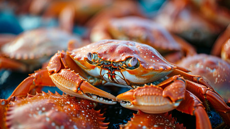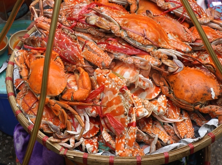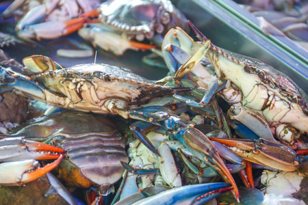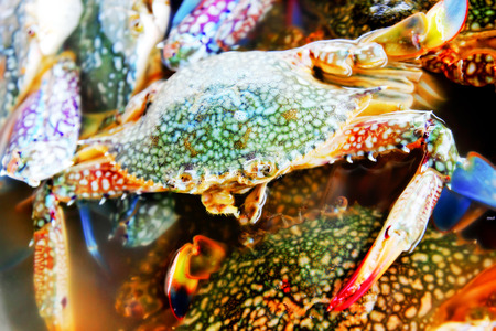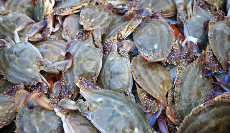 Closeup view on fresh crabs in the market, seafood