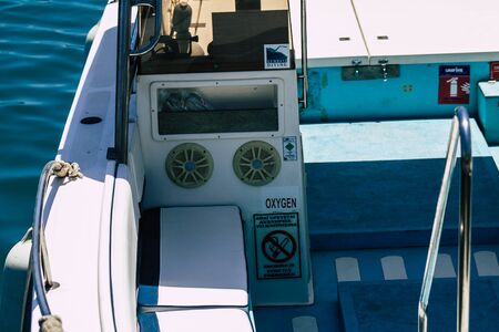 Limassol Cyprus May 30, 2020 Closeup of a fishing boat moored in the old port of Limassol in Cyprus island