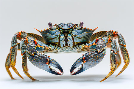 A close look at a crab against a white background