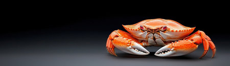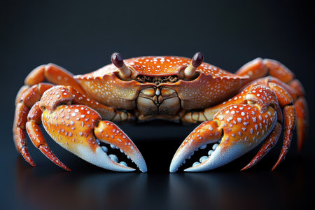 This vibrant orange crab, featuring intricate details and striking colors, poses elegantly against a dark backdrop. Perfect for culinary themes or marine life showcases.