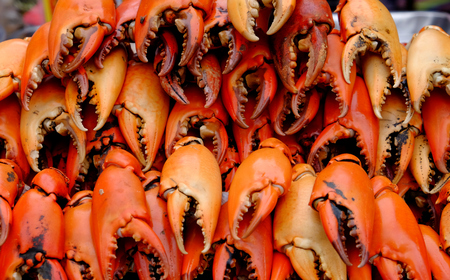 Luxury food crab steamed on red background elegant seafood still life with appetizing texture