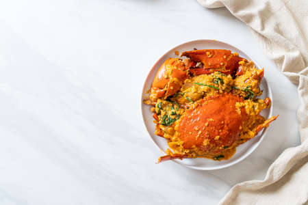 A big of steamed crabs placed on traditional Thai omelet served with seafood spicy sauce. Homemade food