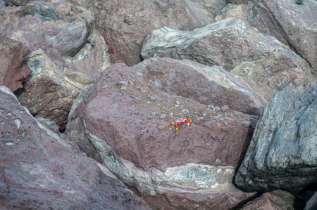Galapagos Islands - August 25, 2017: Red Sally Lightfoot crabs n the beach of Isabela Island, Galapagos Islands, Ecuador