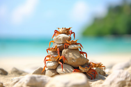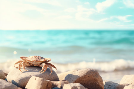A crab is standing on top of some rocks, AI