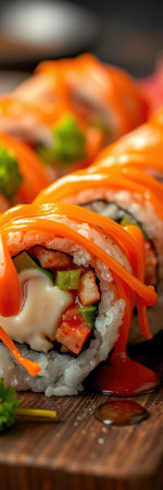 salmon roll sushi with sauce on top - Japanese food style