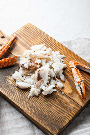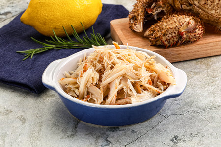 Crab meat / Cooked fresh crab on the wooden table , blue swimming crab