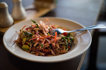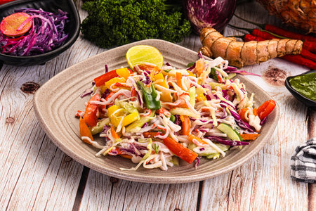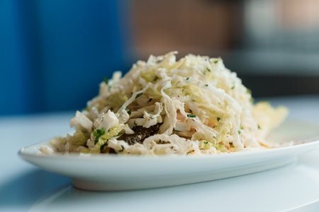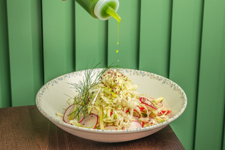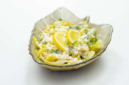 Delicious and fresh salad with savoy cabbage and spring greens in a smooth creamy sauce, healthy diet
